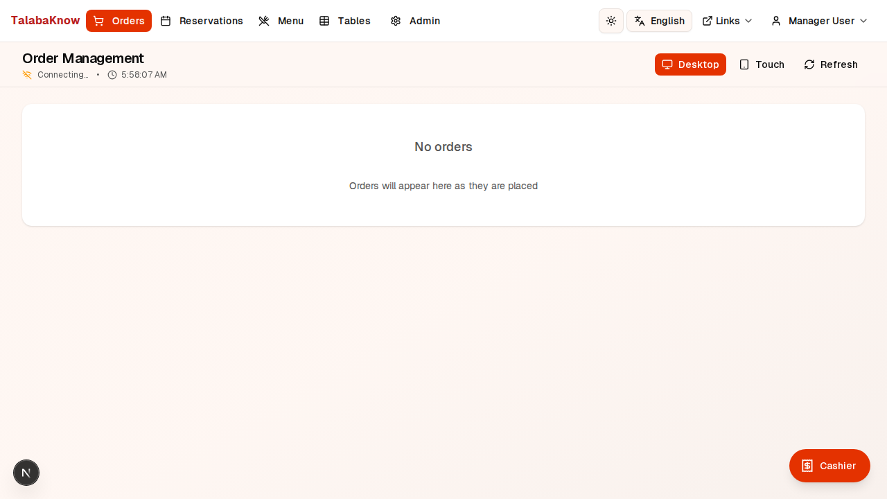 TalabaKnow is an all-in-one restaurant management platform. Restaurants use the staff dashboard to manage their menu, orders, tables, and reservations. Customers receive a public menu link or QR code to browse the menu and place orders; they can track order status in real time. Staff see incoming orders on the order board, update status as the kitchen progresses, and can also register walk-in or table orders via the cashier. Subscription plans define limits (e.g. number of menu items, tables) and unlock advanced features.